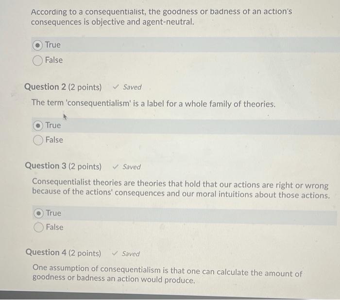 Solved According To A Consequentialist The Goodness Or Chegg Com